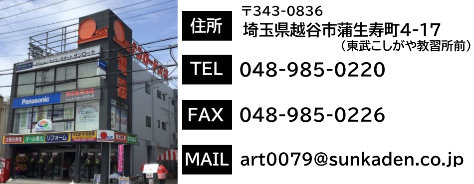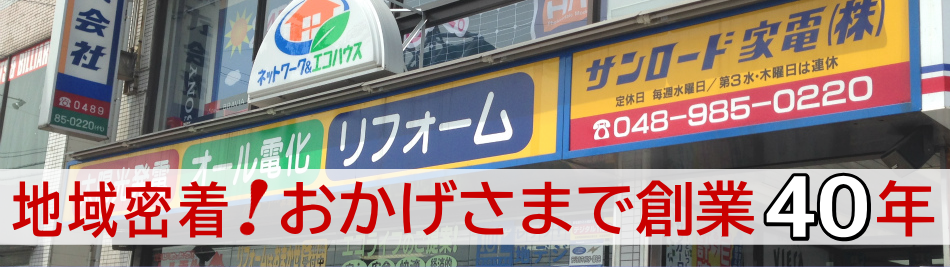 電気のことならサンロード家電におまかせ!埼玉県越谷市にある“地域密着”で安心の電気屋さんです!買った後のアフターフォローも万全です!! |